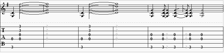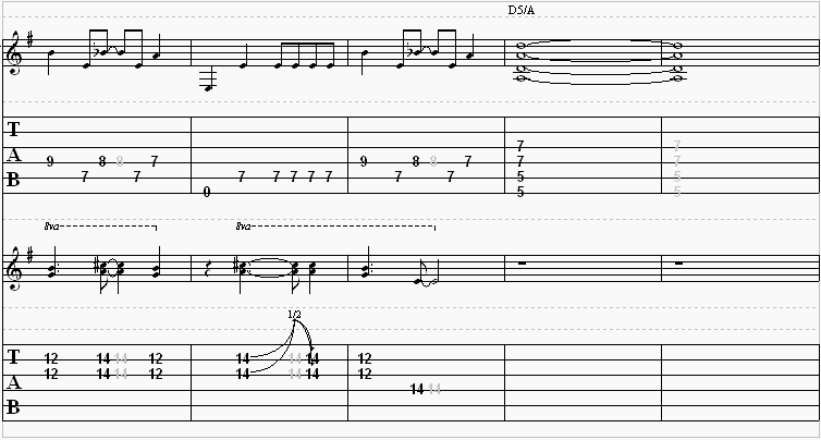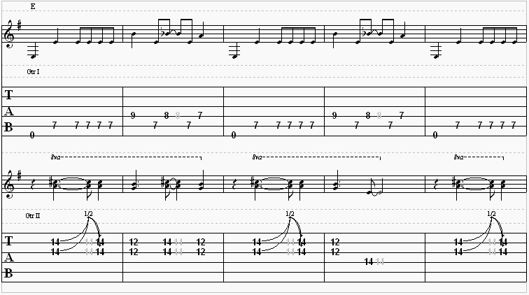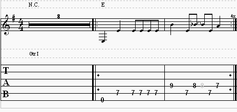 The bass will play through eight times, and then the riff below is what you will play four times.