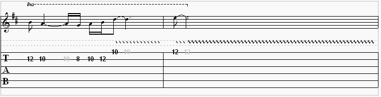 The same applies to the twelfth fret as well. You just use your 3rd finger. To end the measure, use your 1st finger on the tenth fret, but this time on the “high E” string. Notice that you will be playing a trill. Do this by rapidly shaking the string.