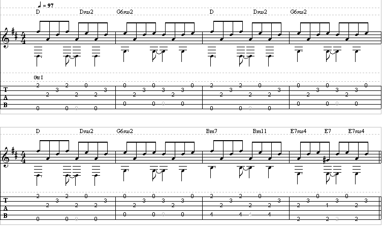 D, G, D, G, B, E