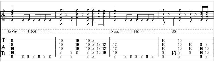 Come Sail Away by StyxGuitar TabInterlude RiffThere are two guitars in this riff.Guitar 1Guitar 2Guitars 1 & 2: https://guitaralliance.net/wp-content/uploads/2024/12/main-8.mp3Riff ResourcesComplete Transcription To “Come Sail Away” (PDF)Complete Transcription To “Come Sail Away” (Power Tab)Related posts:Bang Your Head by Quiet RiotTangerine by Led ZeppelinAlways With Me, Always With You by Joe SatrianiFire by Jimi HendrixTags:Styx