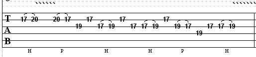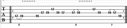 See for yourself! Here’s the tab for the part an octave higher. I haven’t included the audio examples, because it’s the exact same thing as before only at a higher pitch: