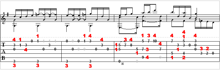 This is a combination, once again, of what you have learned so far. Try to finger them the best that you can, keeping