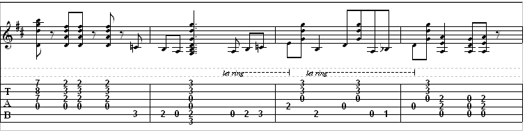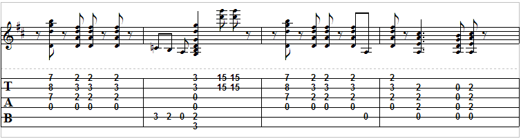 Here’s a moderately fast tune at 135 beats per minute. The biggest challenge is jumping up to the 15th fret from the open G chord and back down.