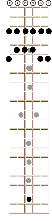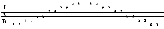 Now forget the fancy name and look at the actual pattern. Remember that it is a movable pattern, so we can play this anywhere on the neck of the fretboard depending on what key we want to play in.