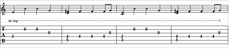This is a piano part, but it’s transcribed here for the guitar: