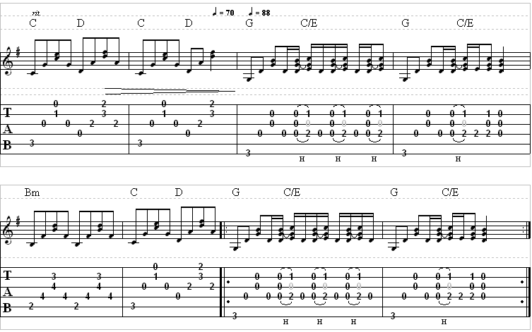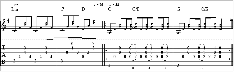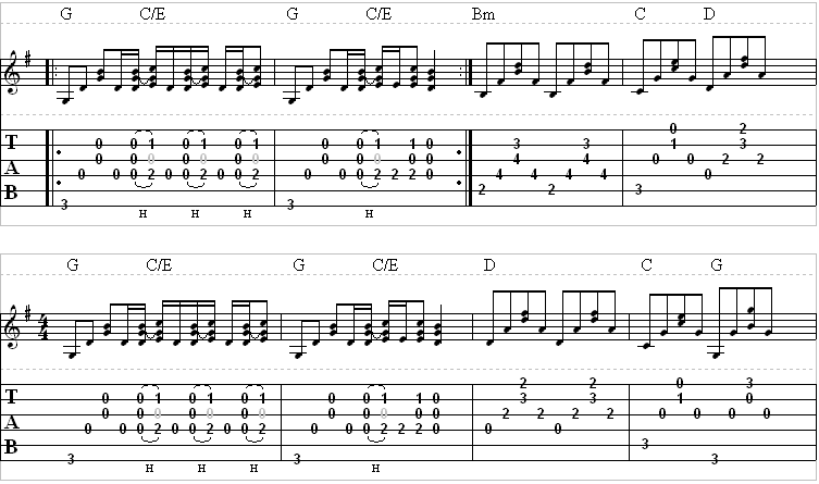 Anytime you see two dark vertical bars with two dots beside them, that will mean to repeat the area that is surrounding it. In some cases, like the ending of this particular song, you will see a number at the end of the measure. It will tell you how many times to play the entire area surrounding it. In this case, you will play the last measure at the end “6x’s,” which just means six times.