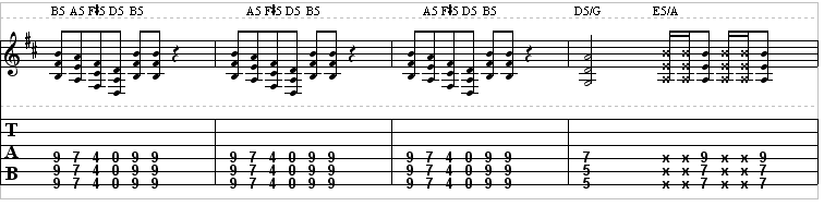 Here’s what the main riff sounds like with guitar and bass: