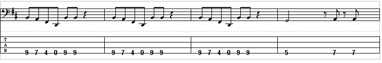 As this riff will be in drop d tuning, notice that all the notes being played will be easy to play using just one finger. The first three measures are identical. You can use any fingers that you want to use to play the notes, but remember that since you are starting out on the ninth fret, so try starting with your 3rd or 4th finger and moving up to your 1st finger in the finale.