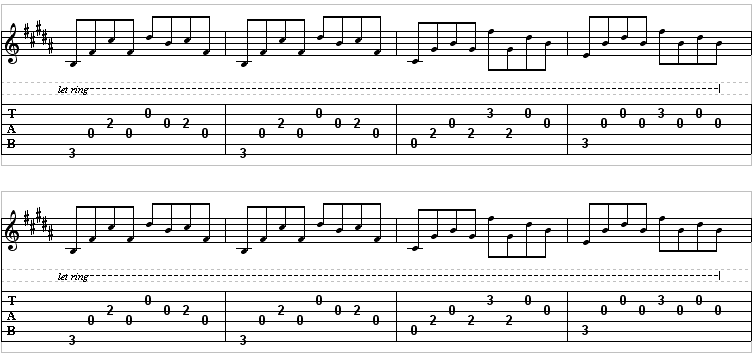 Guitar 1 is in standard tuning with a capo on the 4th fret. The original tuning