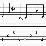 This riff is arranged in four measures, and the second and fourth measures