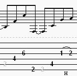 For the last notes of the measure, you will be performing a “hammer.” This “hammer” is performed in two different ways. Notice the bar DIRECTLY above the last set of notes. ( You can also notice the “H” at the bottom of the tablature,