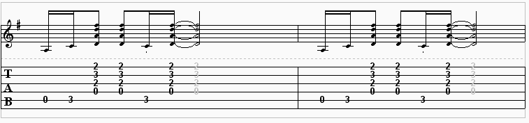This is a pretty easy song to play. The main riff is the verse riff below. Just form a D chord and use your pinky for the note on the third fret of the A string.