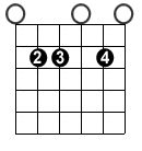 The minor 6th chord is also know as the minor major sixth. It’s the same as the major 6th chord except the minor triad is used. It’s a very jazzy chord and can substitute for a minor chord. Here are it’s open position shapes.