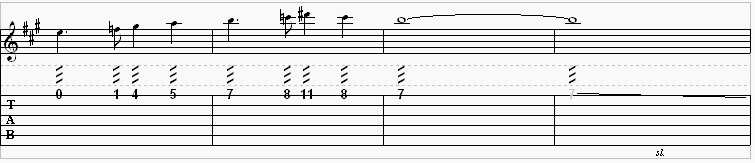 It’s performed with tremelo picking which is represented in the tab with 3 diagonal slashes above the note. To do this you’ll simply alternate pick (up, down, up, down strokes) each note as fast as you can. Also, be sure to use plenty of reverb to get that classic surf sound!