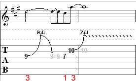 All the notes require only the 1st or 3rd finger. For example, for notes on the 9th and 10th frets use your 3rd finger and for the notes on the 7th frets, you can use your 1st finger. When bending the notes