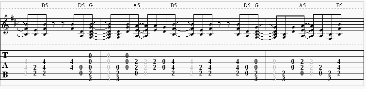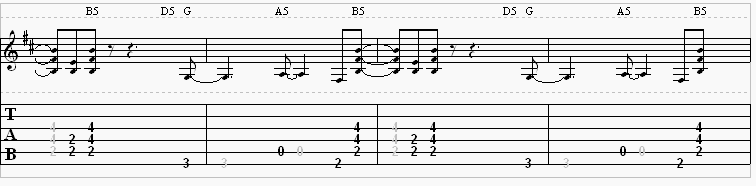 Each riff in this song begins with the previous measure. I know that sounds confusing, but it’s not really. Not when the song starts looping. Below you’ll notice that the first power chord in the 1st measure is a light gray color. That’s because the notes have been held over from the previous measure. Since the four measures of the riff loop over and over the previous measure would be the 4th measure.