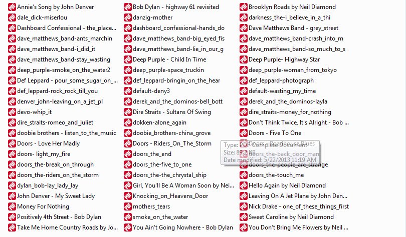 Chords and lyrics to over 500 popular gig songs in text file format.