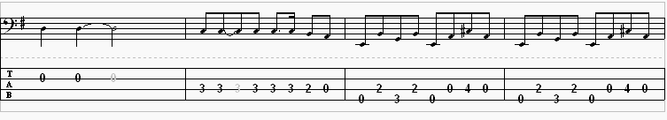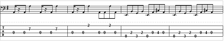 Remember that the bass part below (and the other 2 bass parts to follow) are all repeated for the other parts of the song.