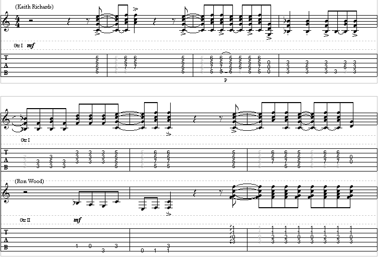 Start Me Up by The Rolling StonesGuitar TabFor Keith’s part, tune to D, G, D, G, B, D (as usual)For Ron’s part, it’s standard tuning.Intro/Verse https://guitaralliance.net/wp-content/uploads/2022/09/intro-1-1.mp3Chorus https://guitaralliance.net/wp-content/uploads/2022/09/chorus-6.mp3Complete TranscriptionRolling Stones – start_me_up PDFRelated posts:Brown Sugar by The Rolling StonesMiss You by The Rolling StonesLet’s Spend The Night Together by The Rolling StonesJumpin’ Jack Flash by The Rolling StonesTags:Open G SongsRolling Stones