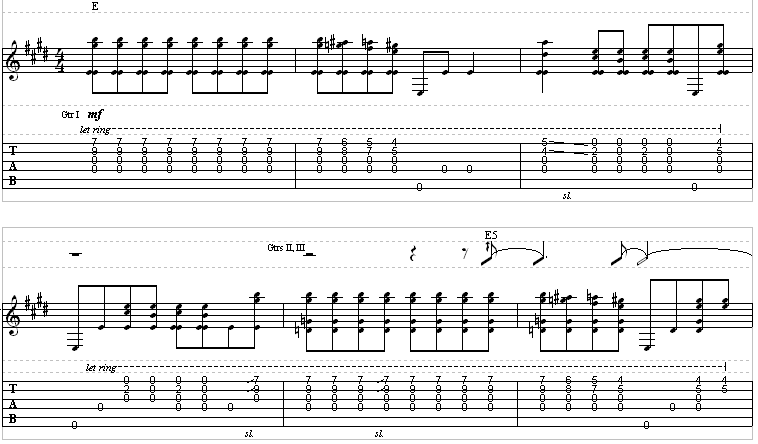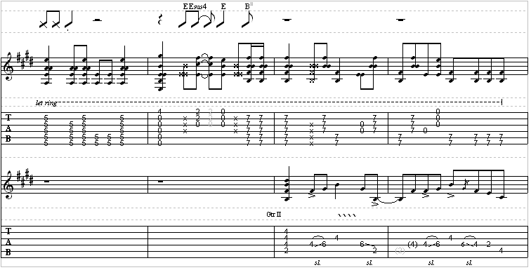 The intro has all three guitar parts, but Guitar 2 and 3 play the chords near the end of the intro.