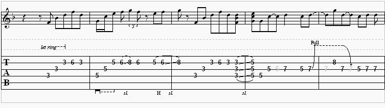 The 1st half of the solo contains 3 phrases. Practice each phrase separately.