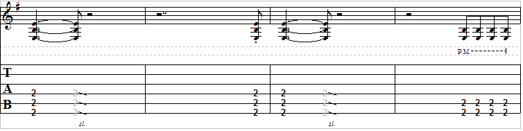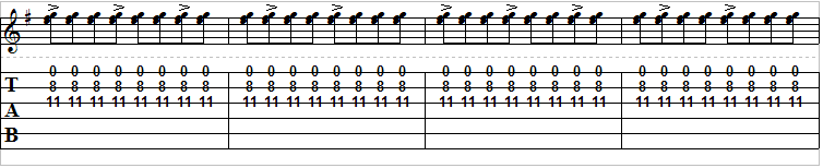 This riff is pretty standard and is in drop D tuning. In drop D tuning the low E string is tuned down one step to D. This enables the guitarist to play power chords with a single finger. If your favorite