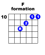 Here are all the F chords. Use this diagram to play all the F chords that appear:
