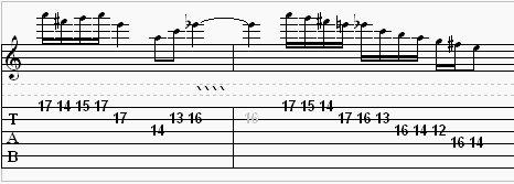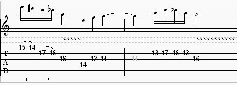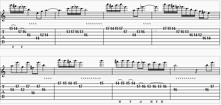 This lead guitar part’s notes are take directly from the scale pattern above.