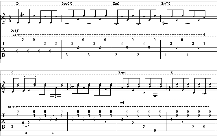 Remember that this is chord-based fingerpicking. You should form the chords at the beginning of each measure and hold the chord form until the next chord form comes along to allow each note to ring as long as possible.