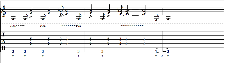 For this riff, you may want to use your thumb for the “low E” string notes, as it will provide much more ease in playing the riff. The option is still totally up to you though. In this riff, you will be focusing on some palm mutes and a slide, as well as some “vibrato.” Vibrato is when you rapidly shake the string being played with your fret hand as much as possible to produce a wah-like effect. This riff is set to 144 bpm (beats per minute).