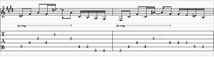 This riff requires a capo to play on the 2nd fret, or you can just bare the 2nd fret with your first finger (a little bit harder). Every guitar player should have a capo in their toolbox. It’s a device that you clamp onto your guitar to clamp the strings down. In this instance, we’re capoing the 2nd fret. This will automatically transpose everything up a whole step so that the open strings are the notes on the 2nd fret of the guitar. Therefore, the notes on the 2nd fret in the transcription are played as open strings. All other notes are relative to the capo. As I said, it is possible to play this without a capo by fingering the notes on the 2nd fret, or you could transpose it down a whole step and play everything 2 frets down so that the notes
