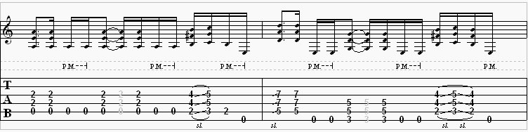 according to the tablature, and right after you have played the open note on the “B” string, simply use your 1st finger to hammer-on to the first fret on that string. To end the first measure of this interlude, simply use your 1st finger and move to the third fret on the “B” string and play that once, along with the open note on the “high E” string.