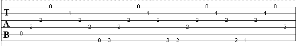 The chord progression is as follows: Am, Am/G, Am/F#, Fmaj.7, Am, G,D, E. As you can see, it is a fairly involved progression. If you don’t know how to play all of these chords that’s okay. Here they are in the tab:
