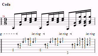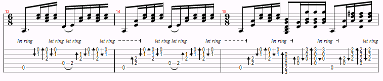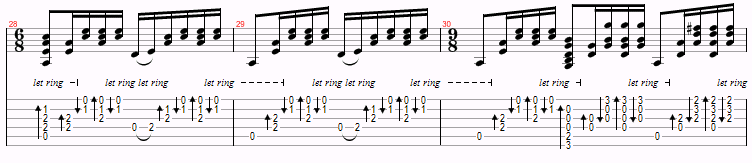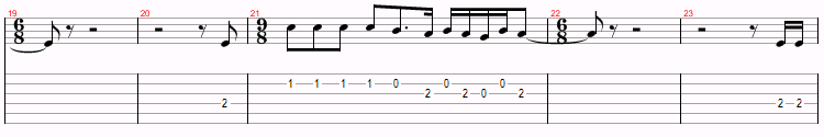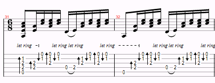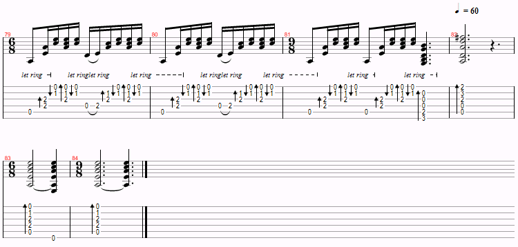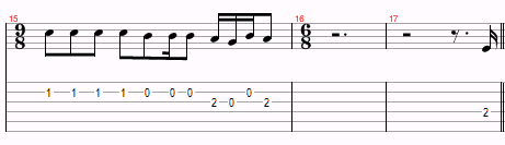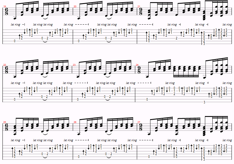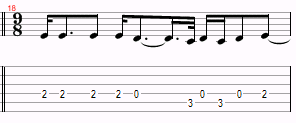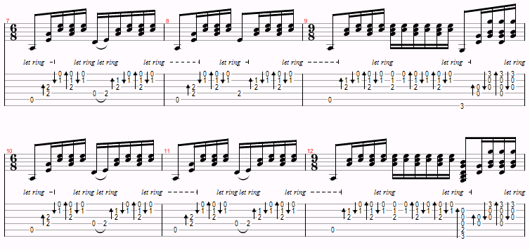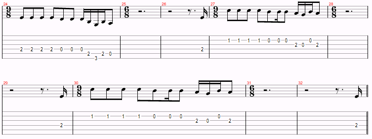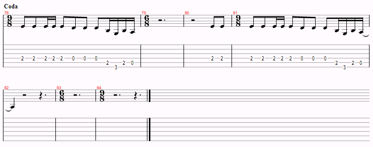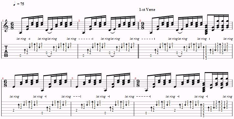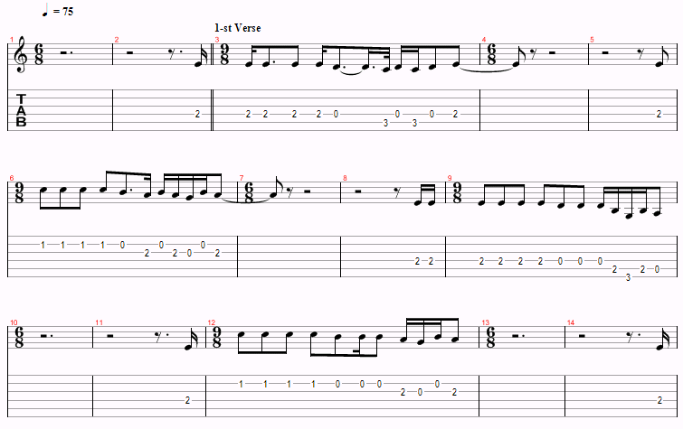 This is just a variation of Am and G over and over, with a D thrown in near the end. The only things to watch for are the hammer-ons and the time changes. However, you probably won’t even notice the time changes.